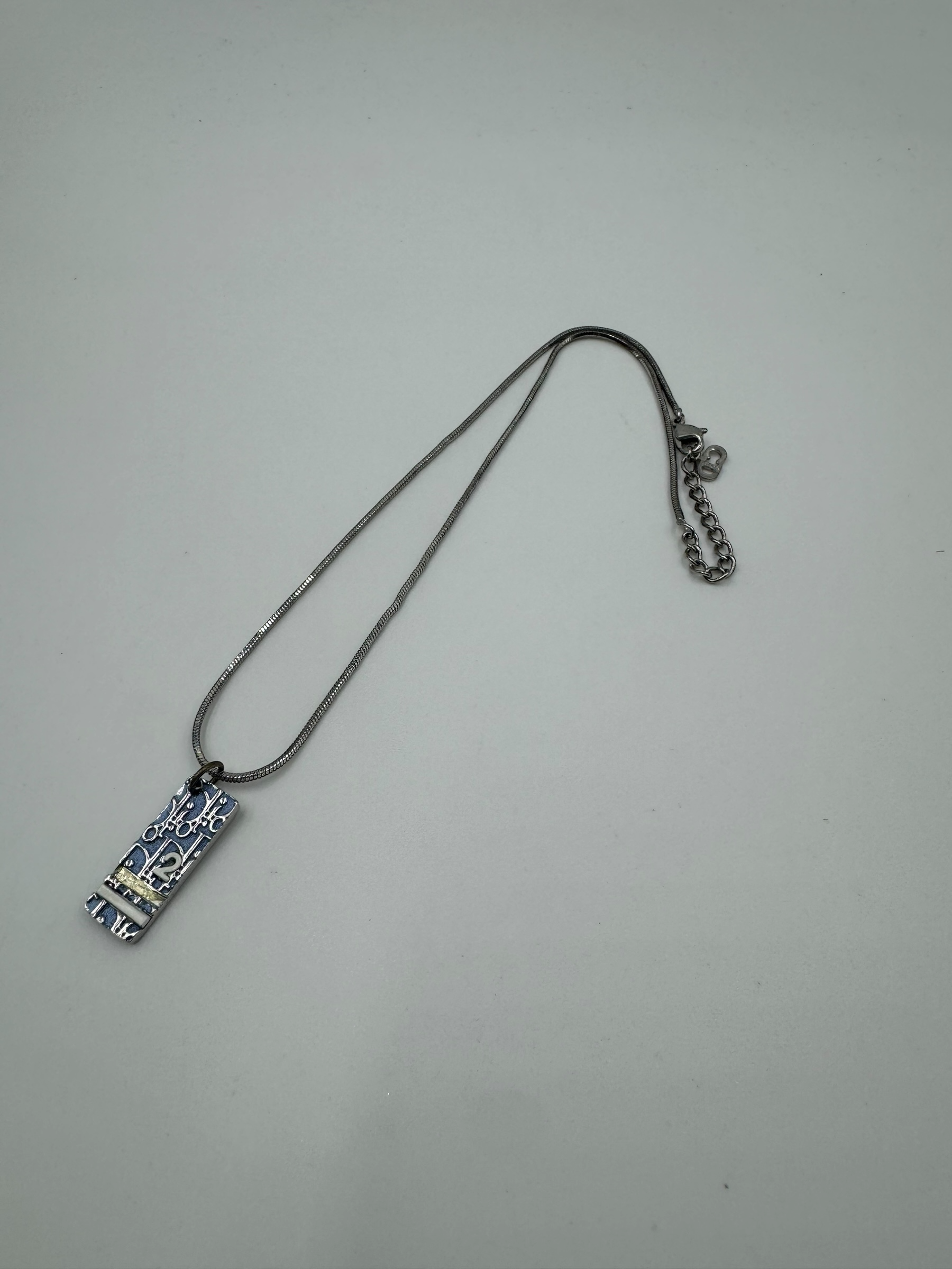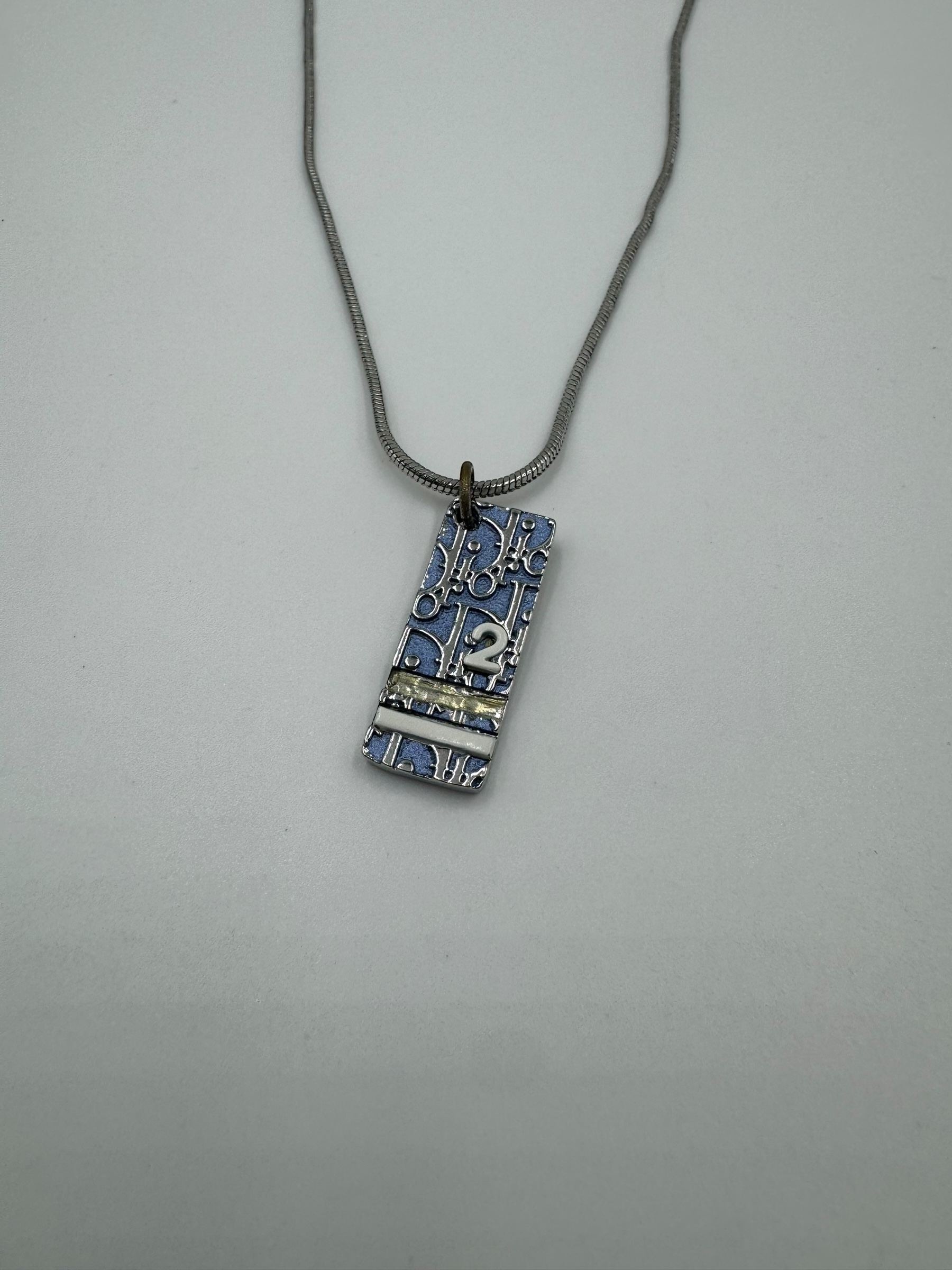 DIOR TROTTER BLUE PLATE SILVER NECKLACE
