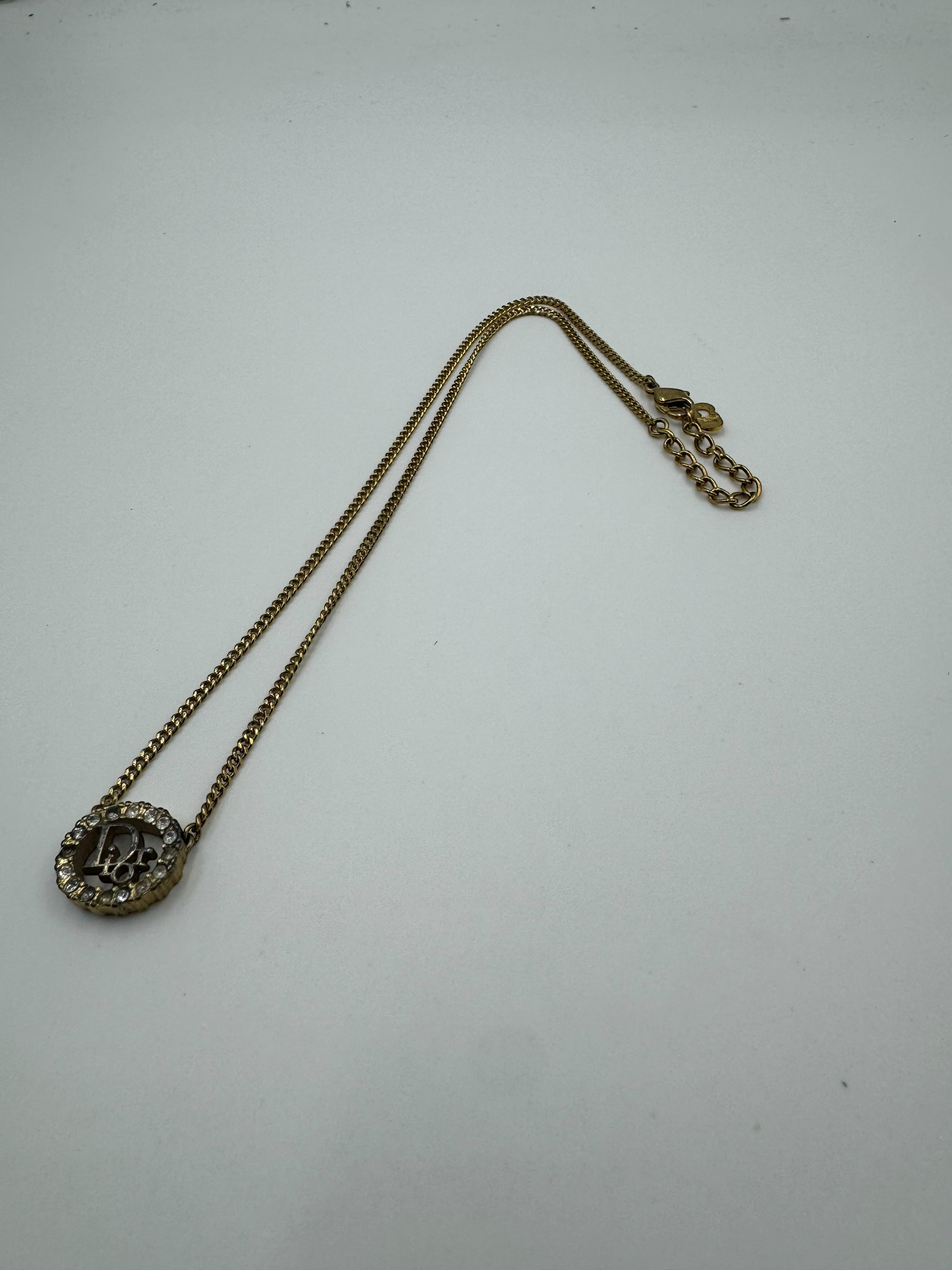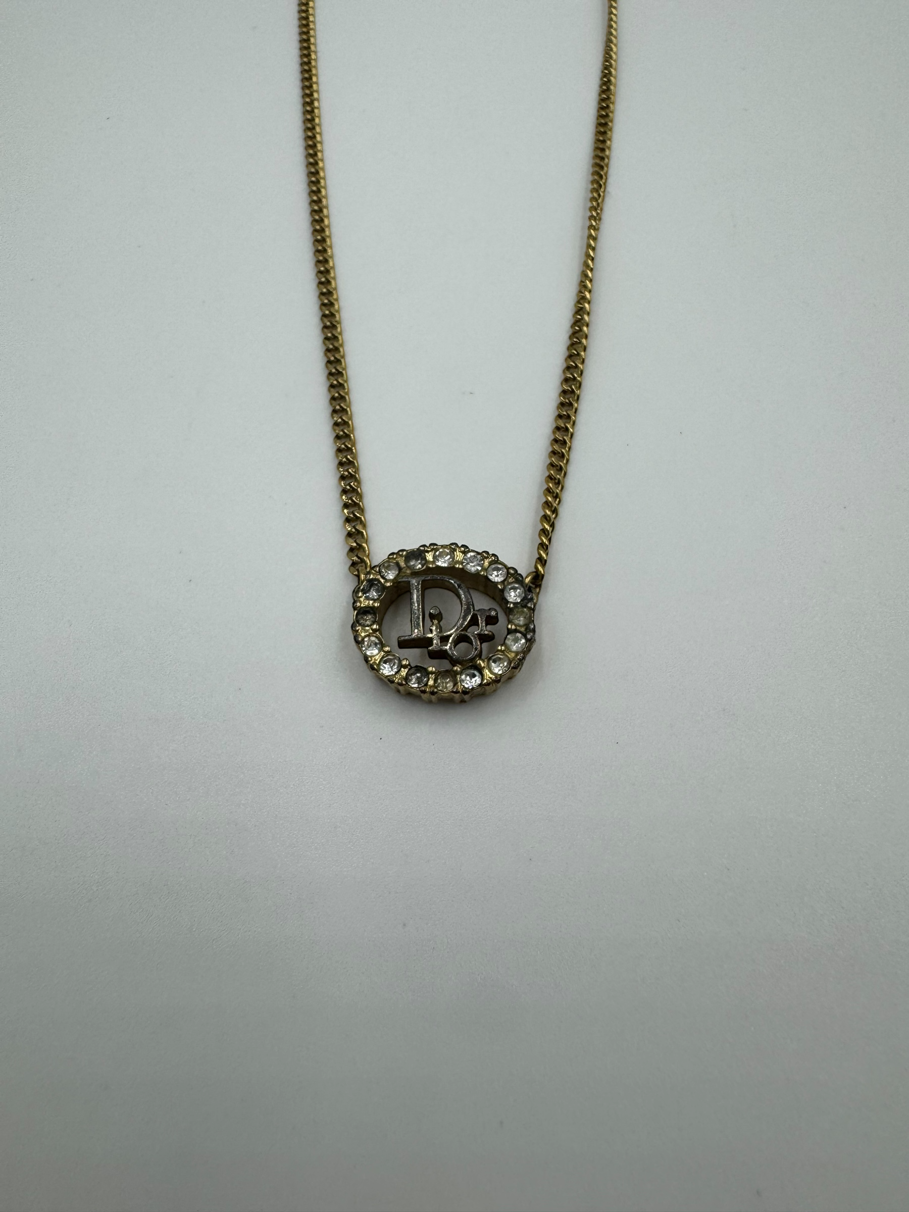 DIOR LOGO CRYSTAL CIRCLE GOLD NECKLACE