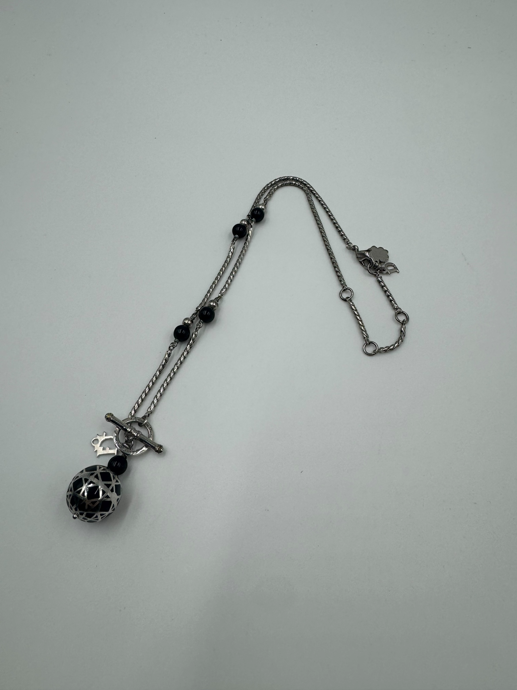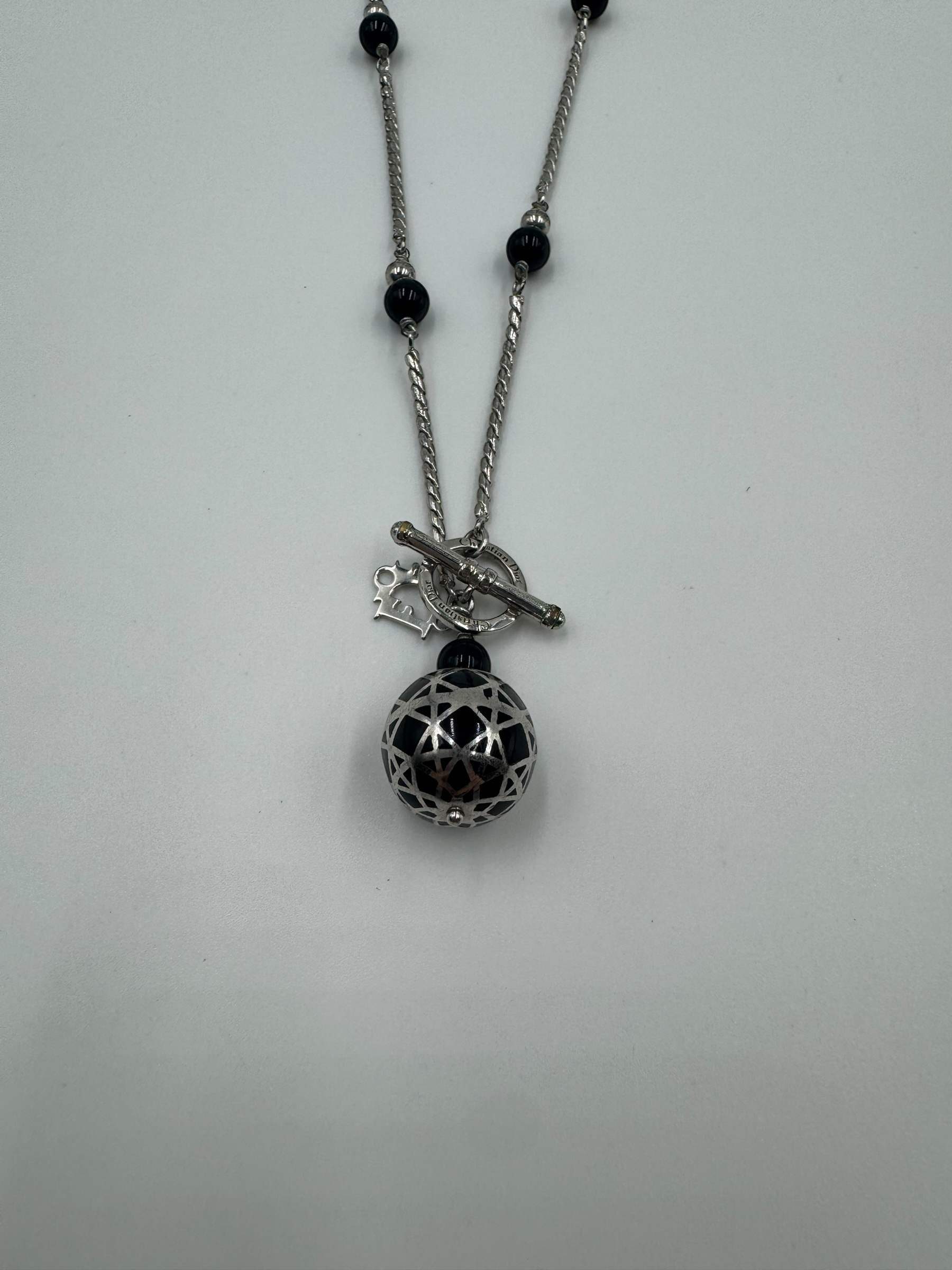 DIOR BLACK ORB SILVER NECKLACE