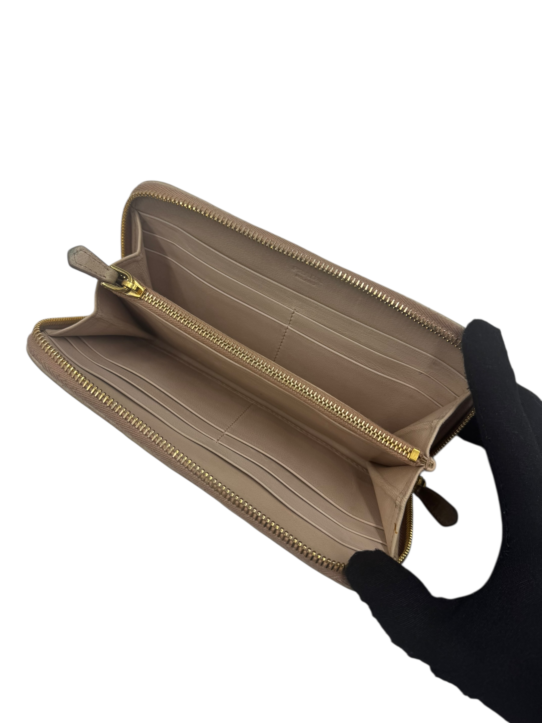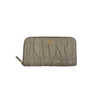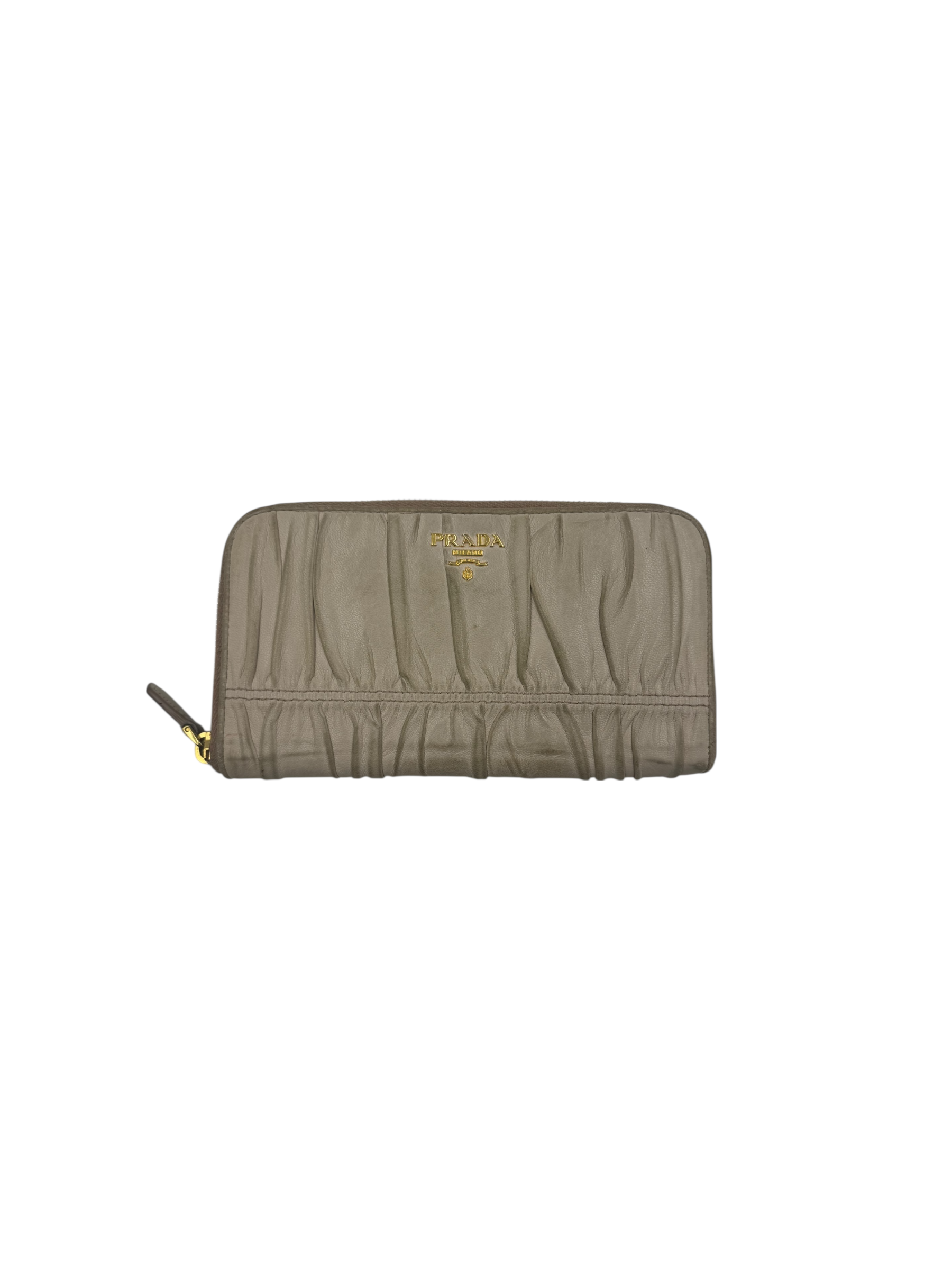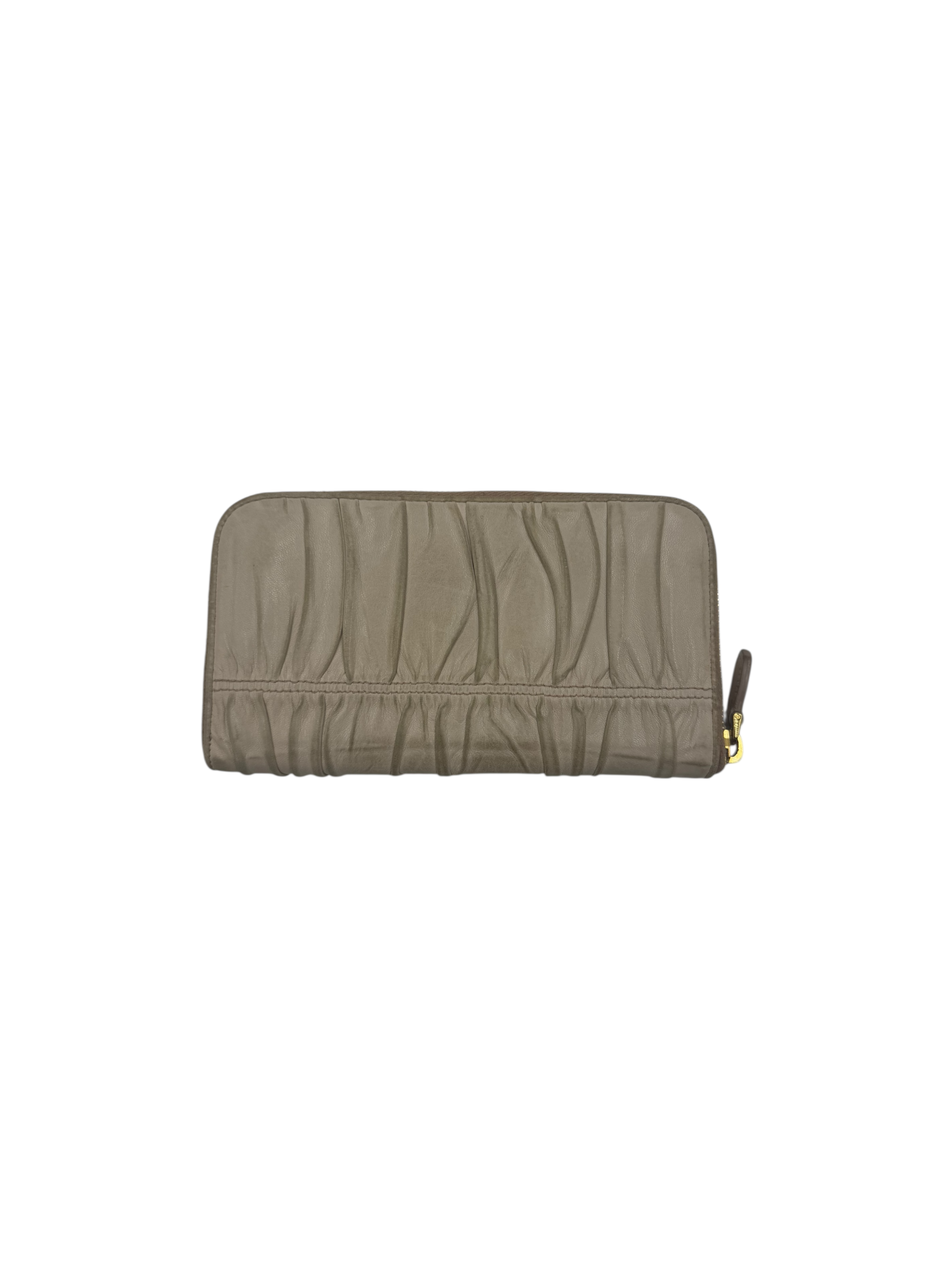 PRADA TAUPE GATHERED LEATHER ZIP WALLET