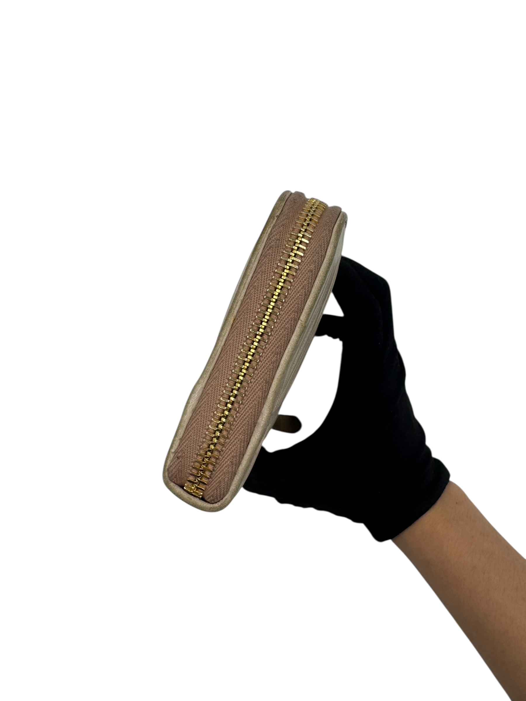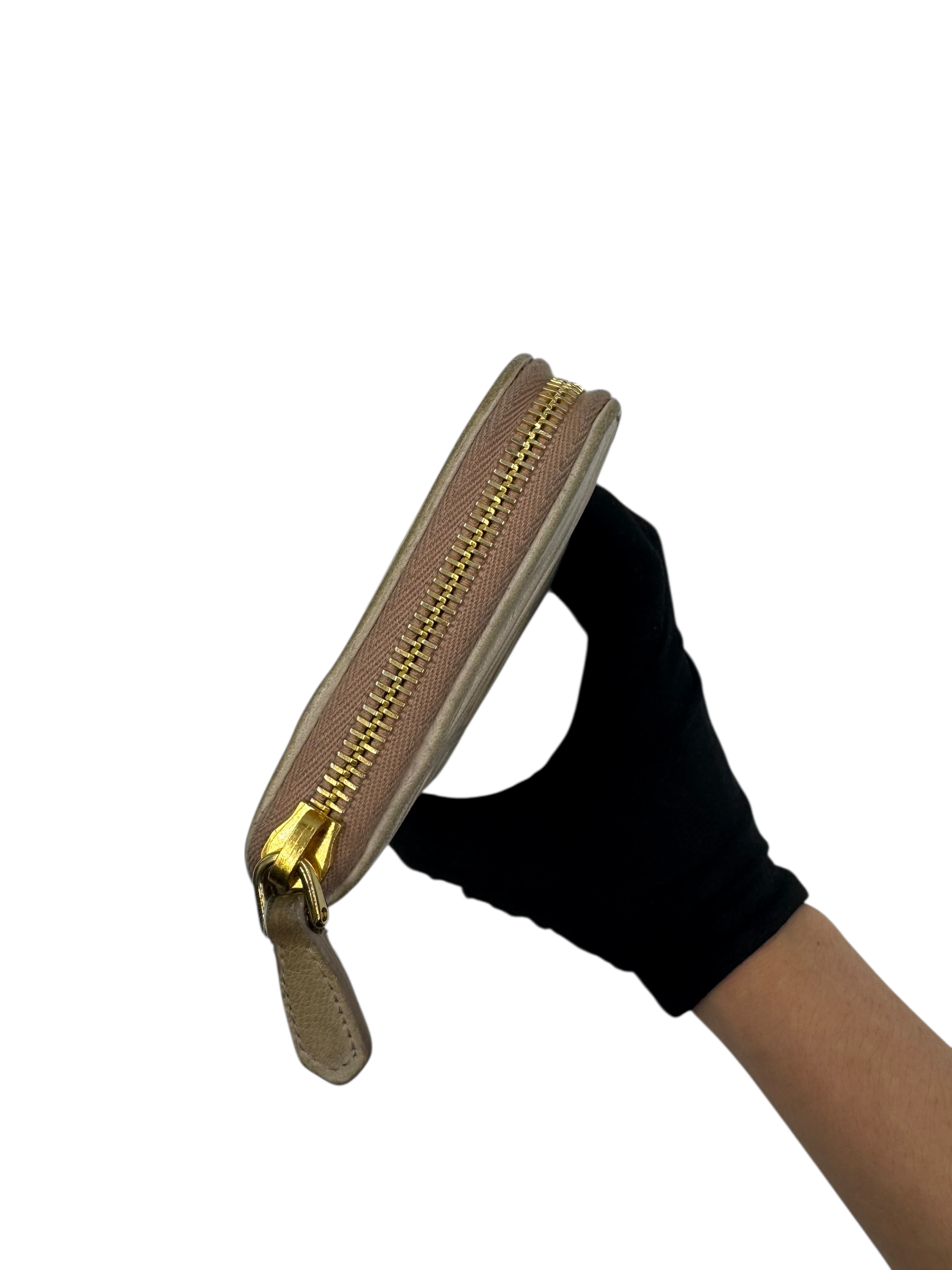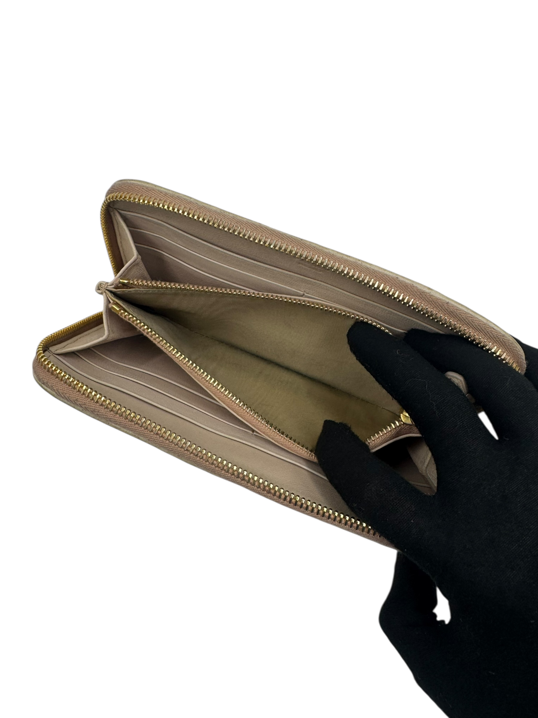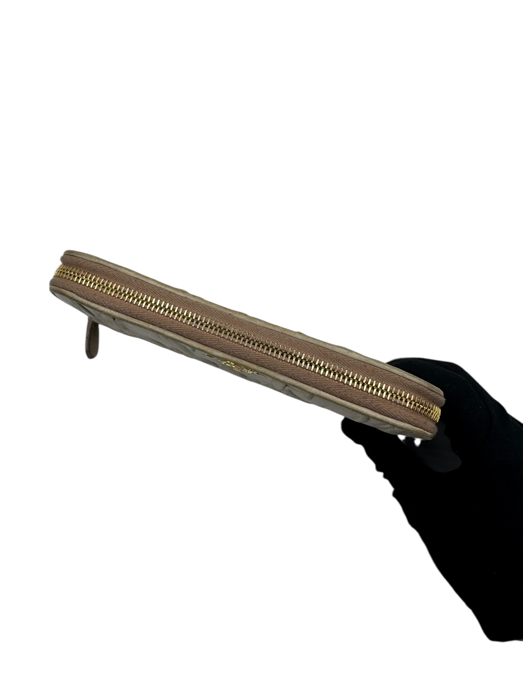 PRADA TAUPE GATHERED LEATHER ZIP WALLET