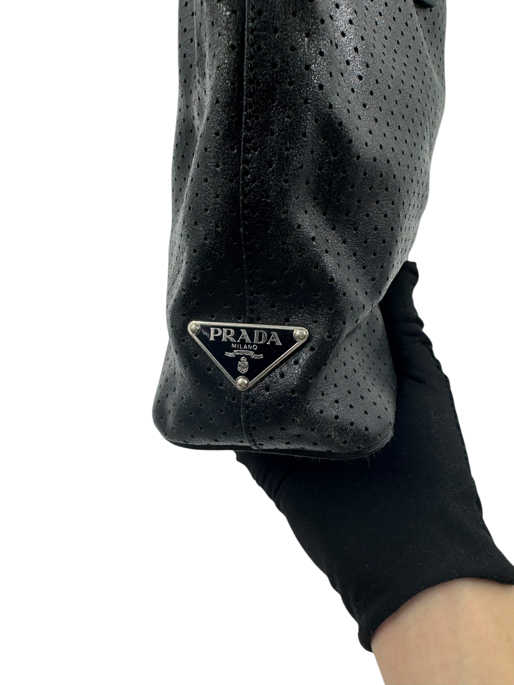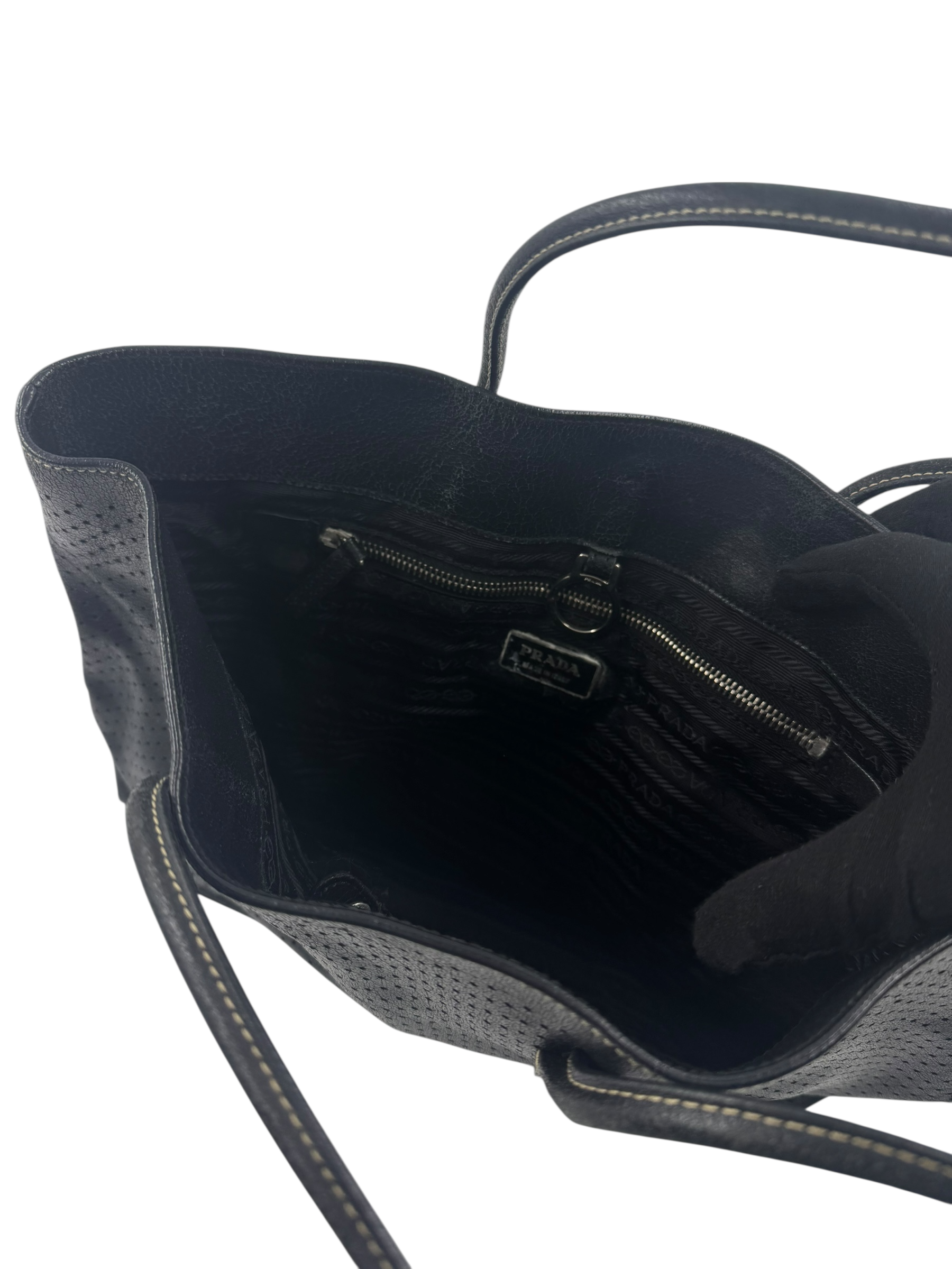 PRADA PERFORATED LEATHER TOTE BLACK BAG
