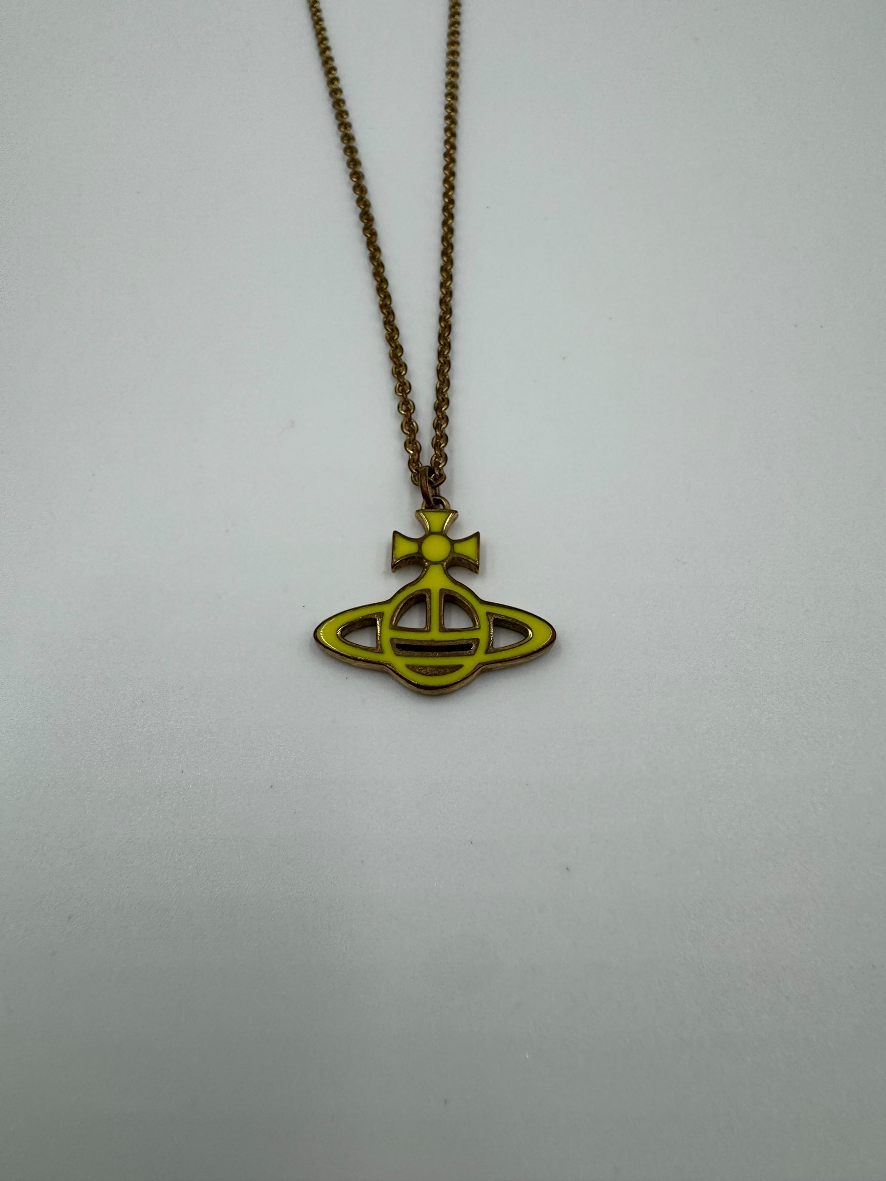 VIVIENNE WESTWOOD PINK & YELLOW ENAMEL ORB NECKLACE