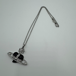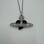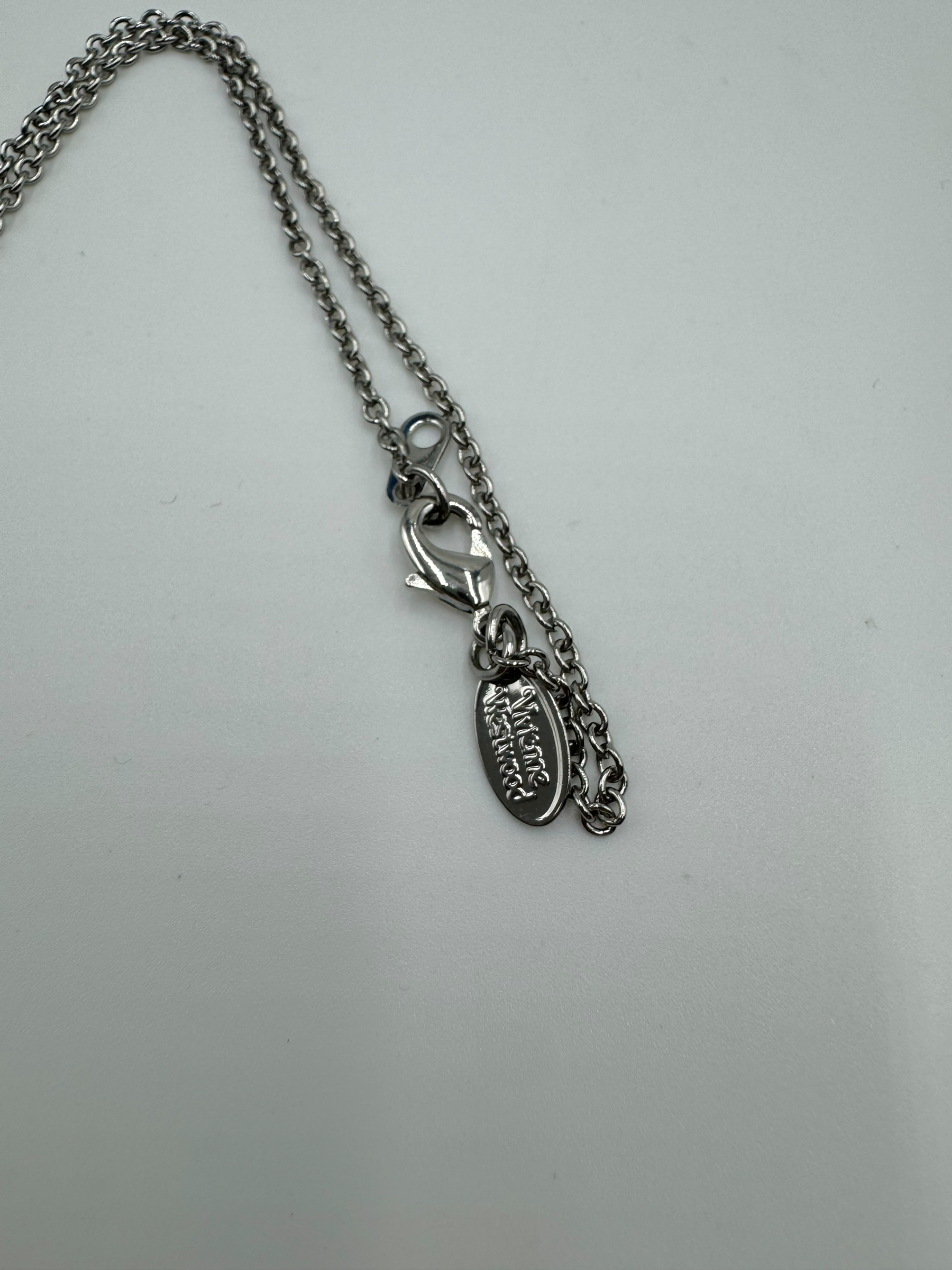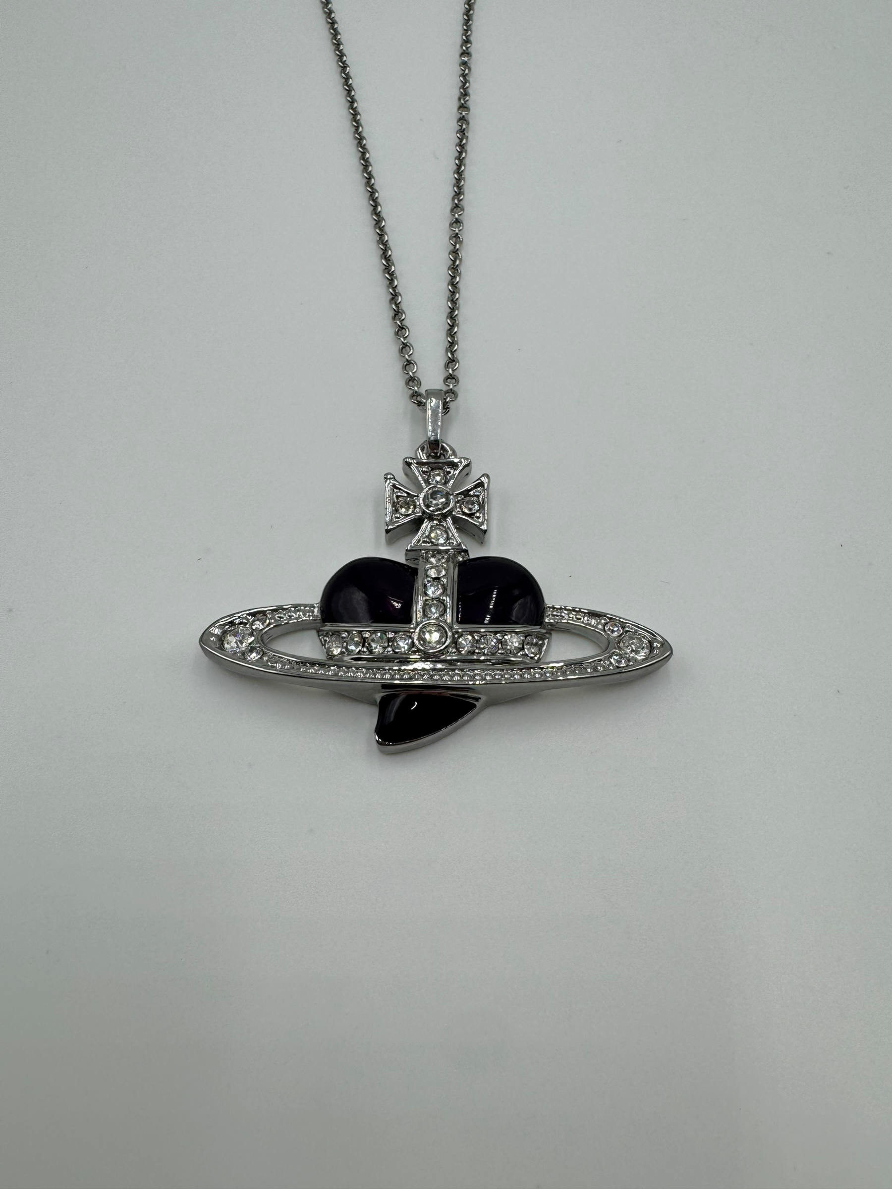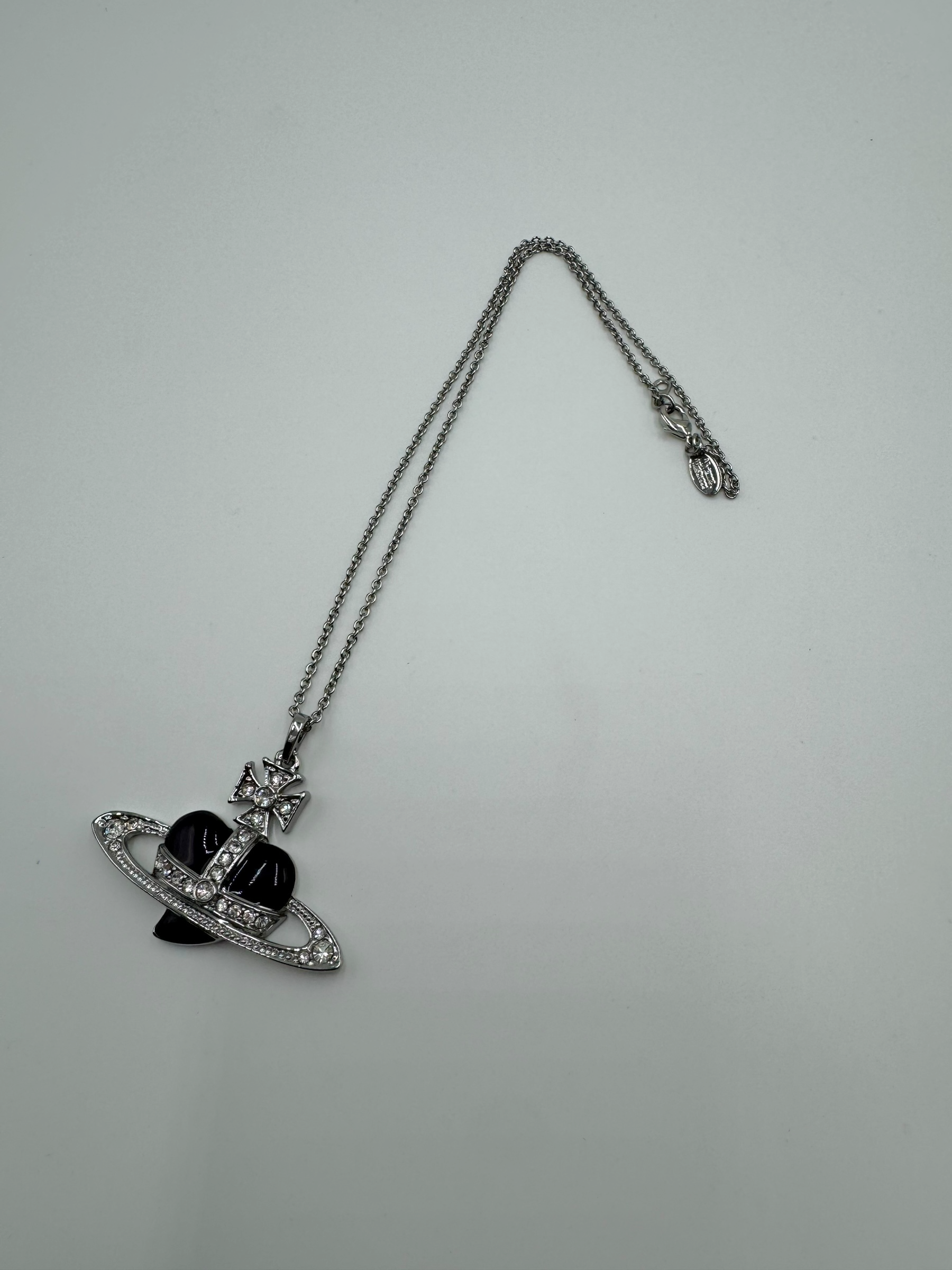 VIVIENNE WESTWOOD BLACK DIAMANTE HEART SILVER NECKLACE