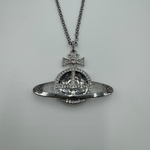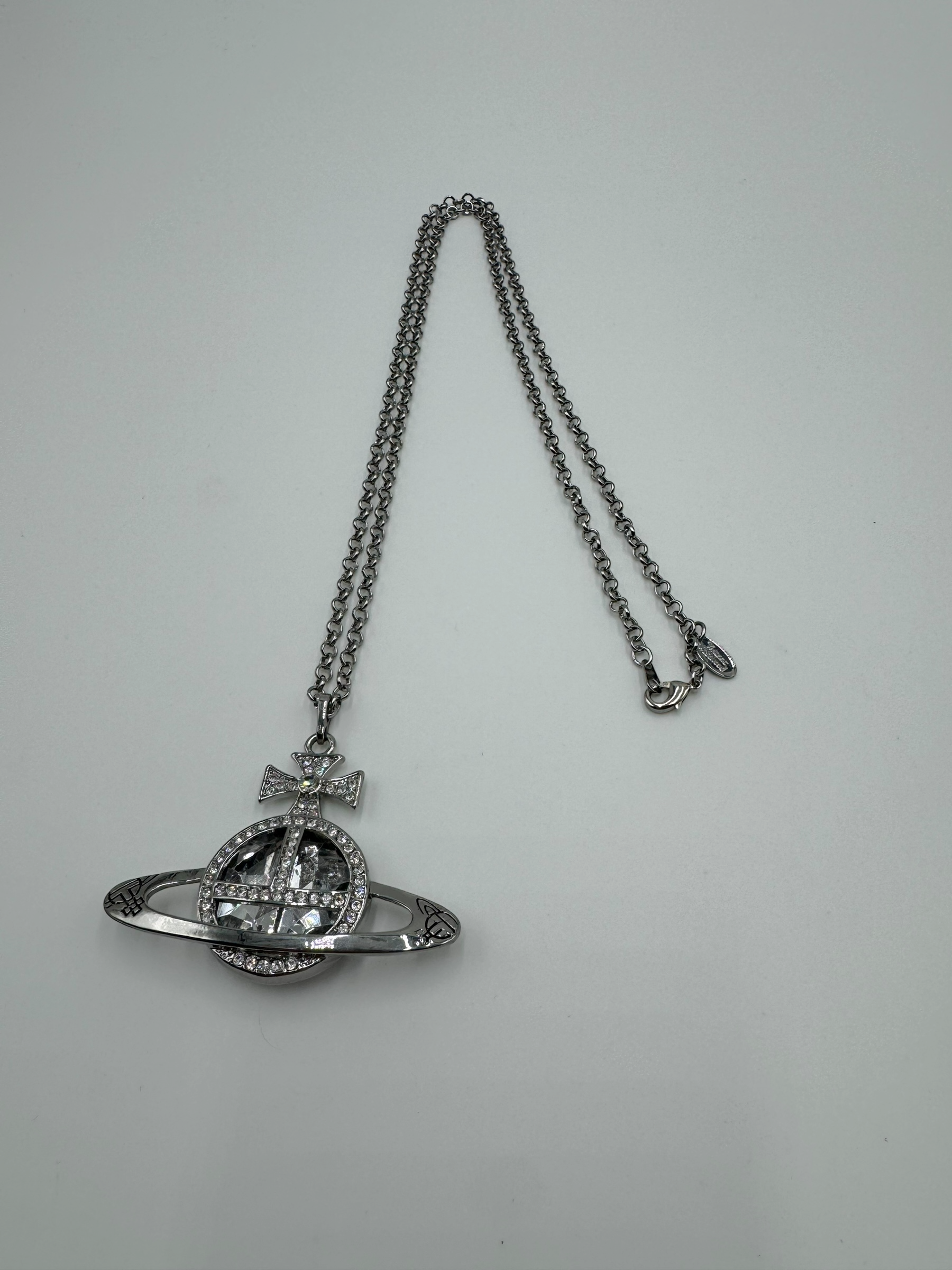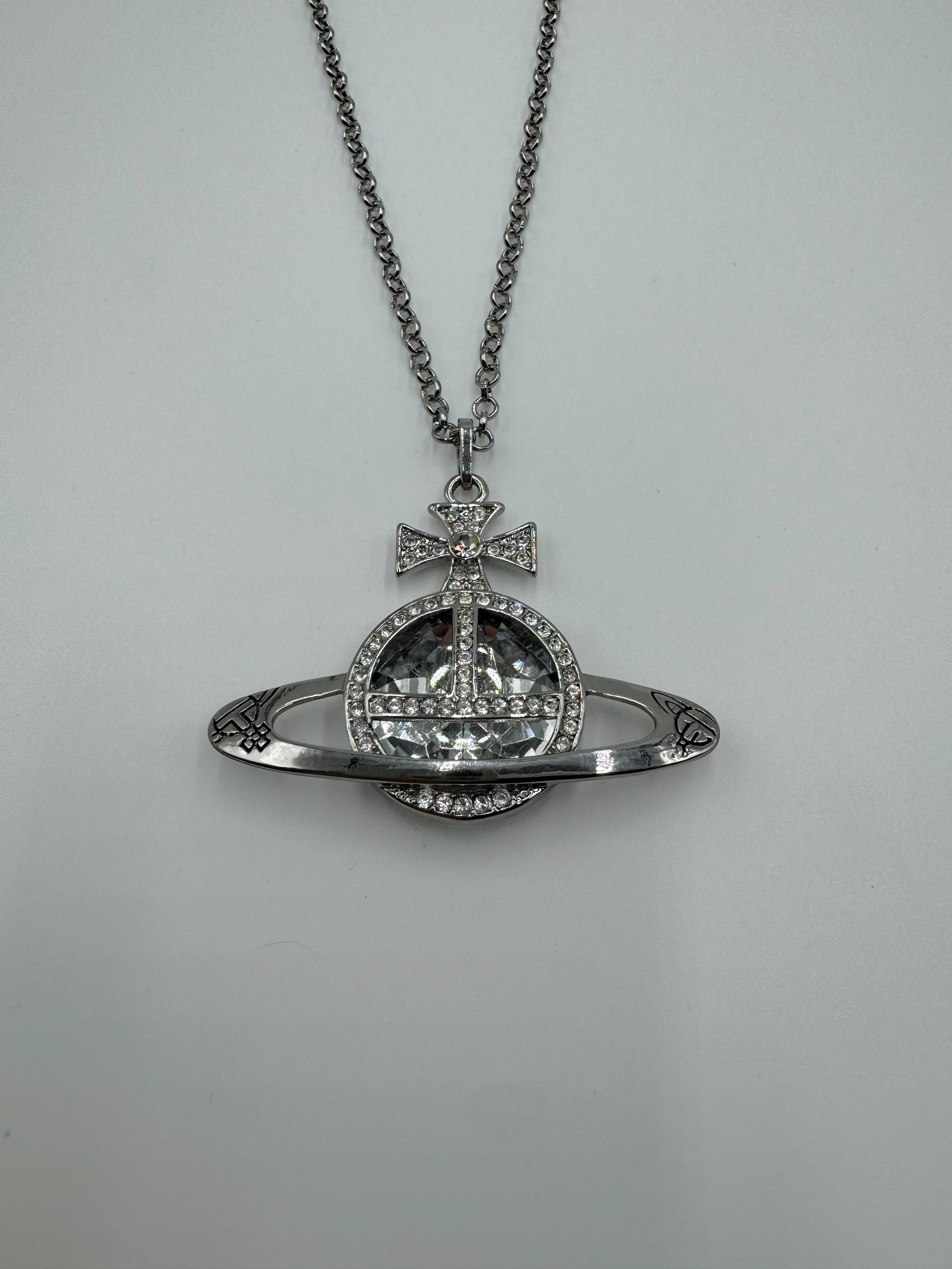 VIVIENNE WESTWOOD LARGE SILVER ORB SATURN CRYSTAL NECKLACE