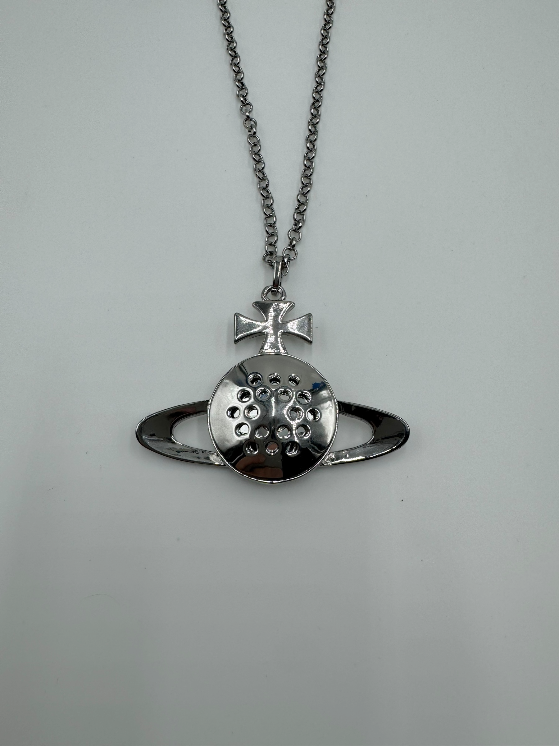 AUTHENTIC VIVIENNE WESTWOOD LARGE SILVER ORB SATURN NECKLACE: