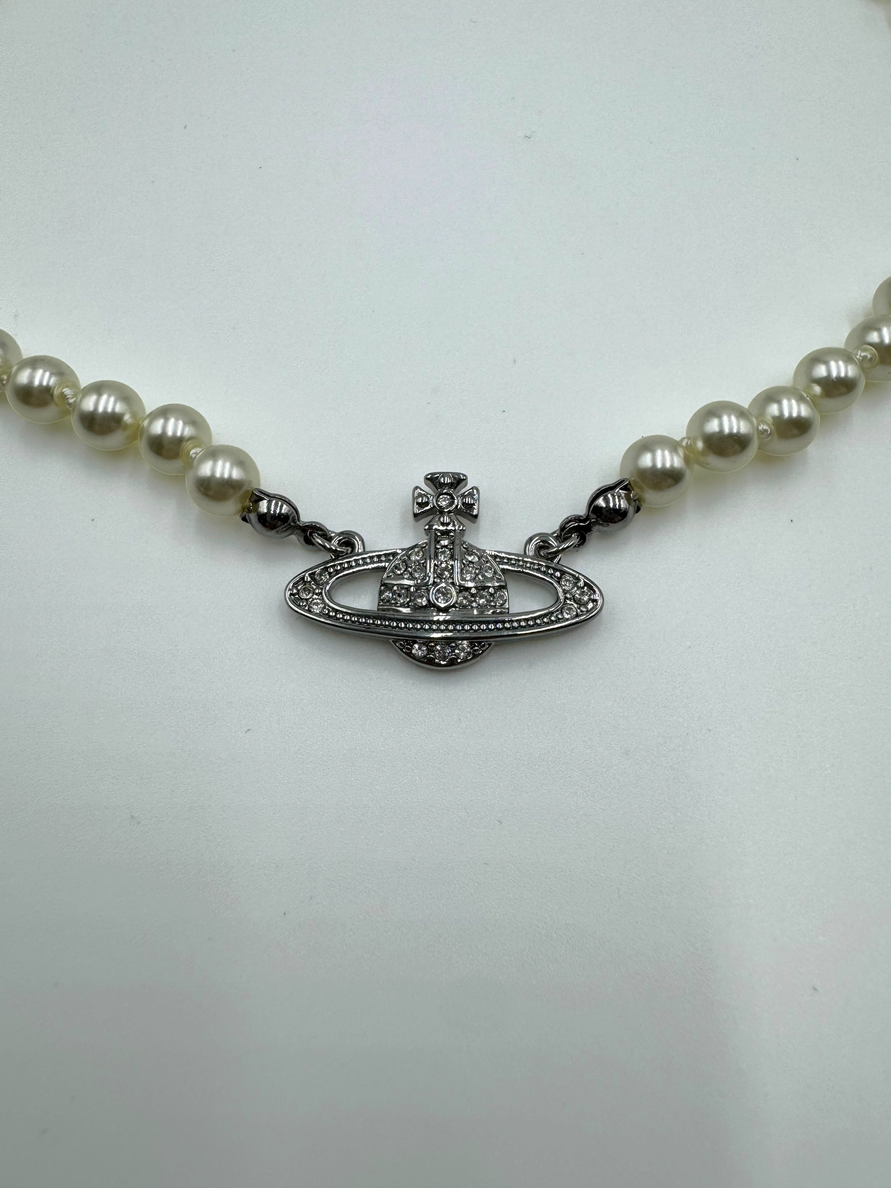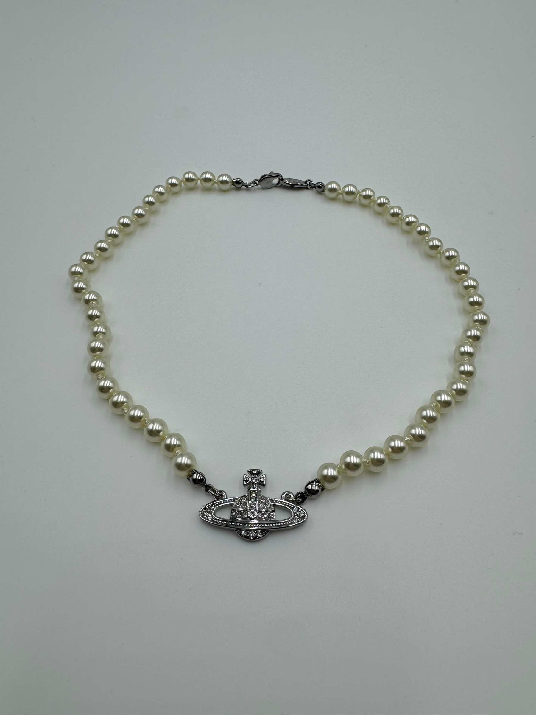 AUTHENTIC VIVIENNE WESTWOOD MINI BAS RELIEF PEARL SILVER CHOKER:
