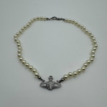VIVIENNE WESTWOOD MINI BAS RELIEF PEARL SILVER CHOKER