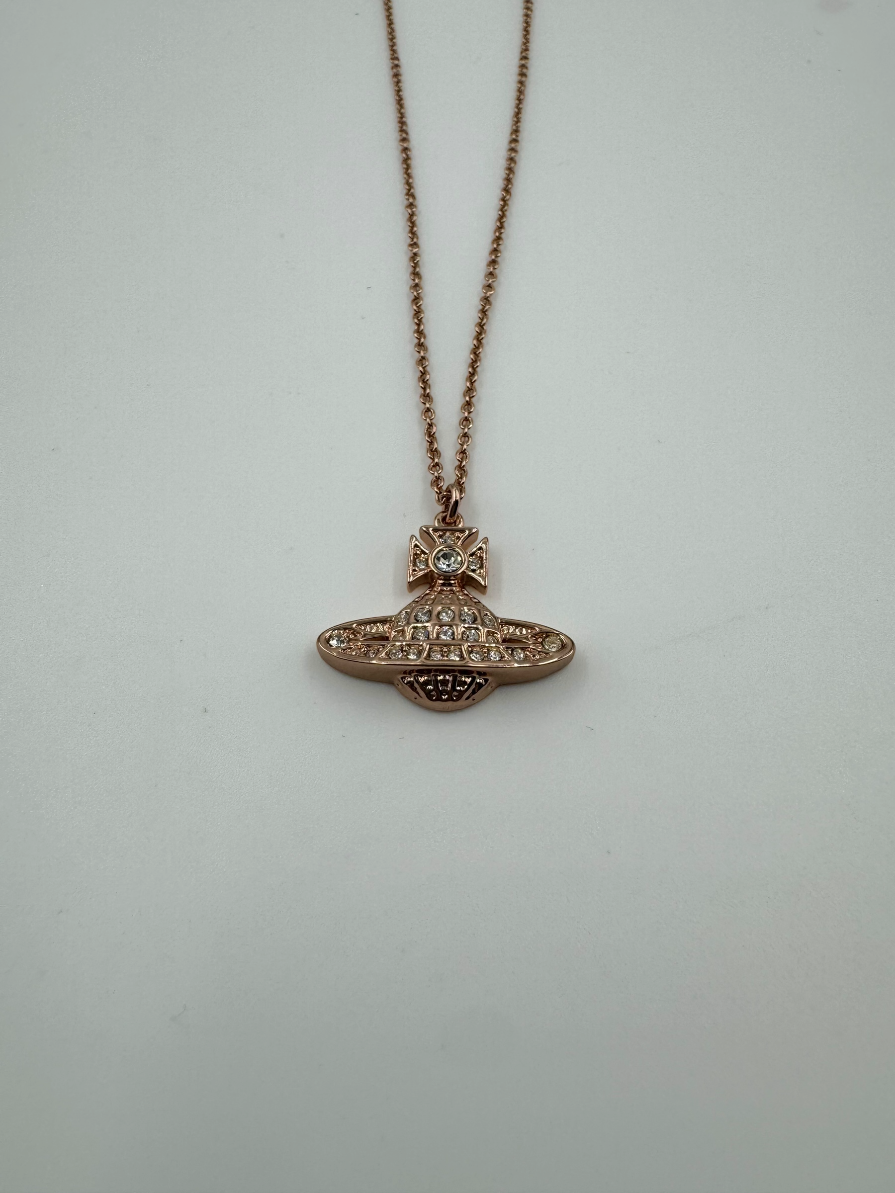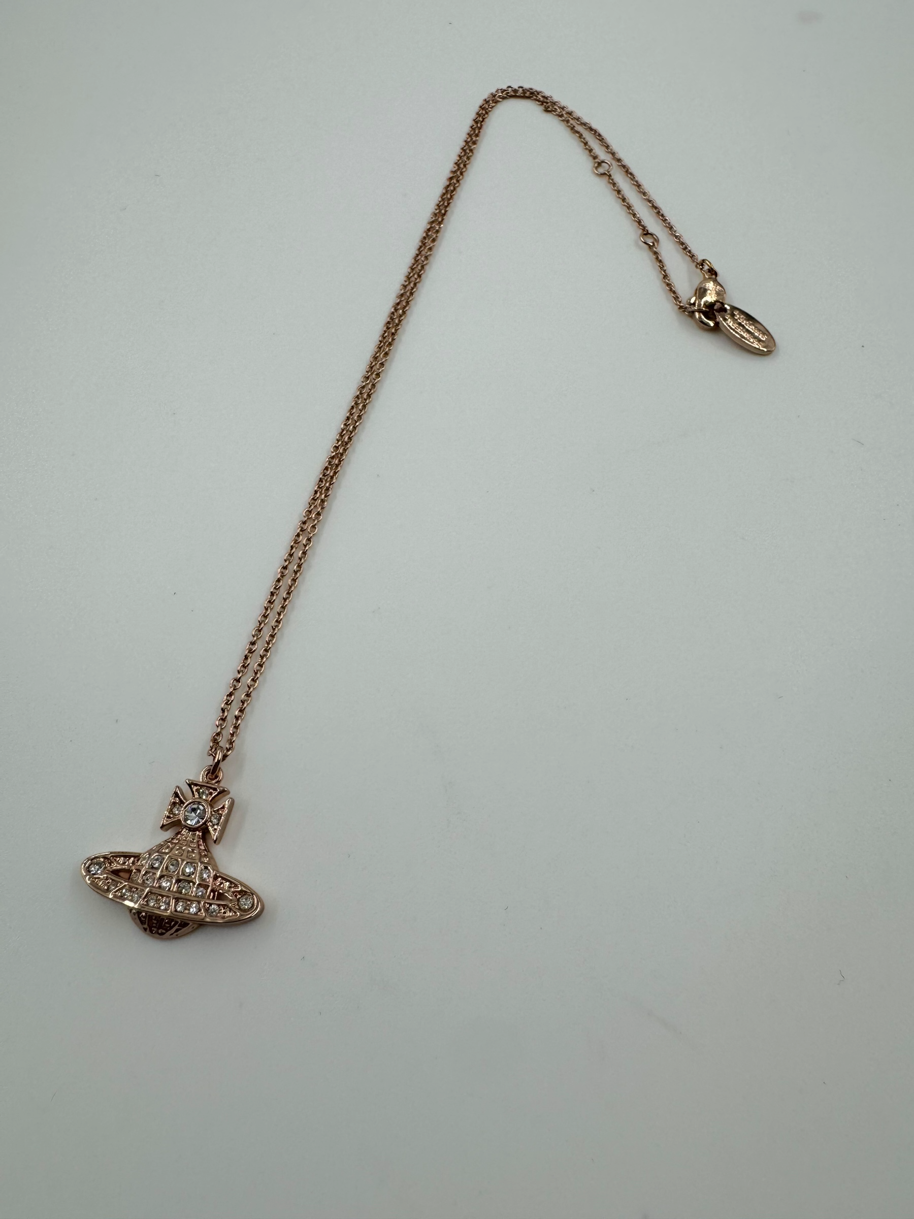 AUTHENTIC VIVIENNE WESTWOOD ROSE GOLD CRYSTAL SATURN NECKLACE: