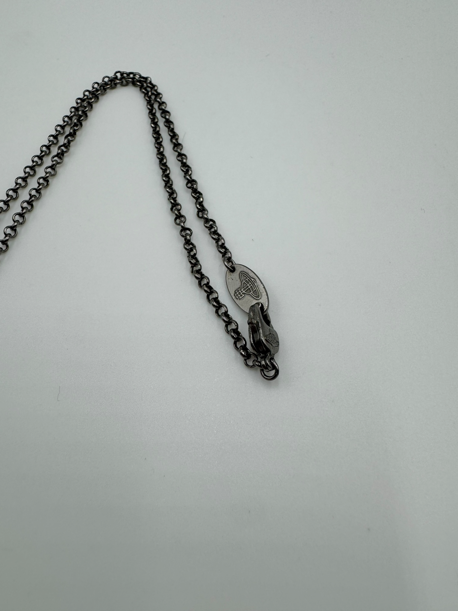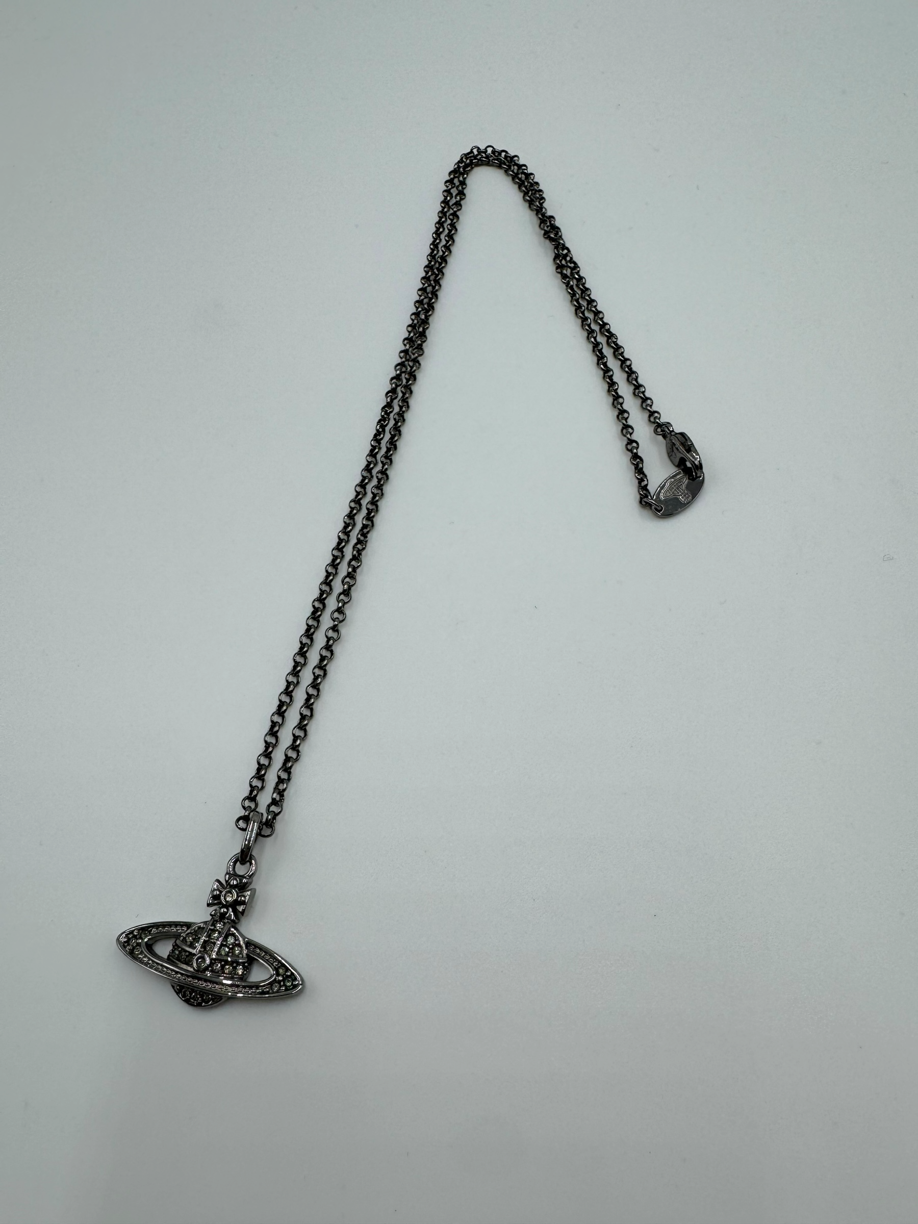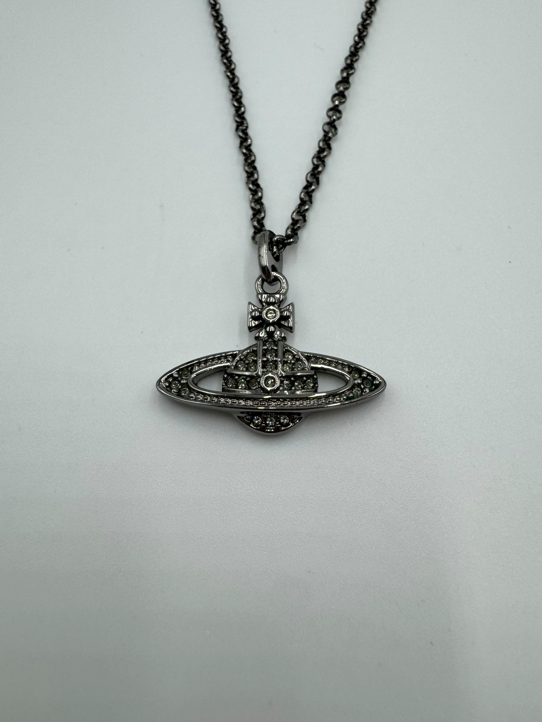 AUTHENTIC VIVIENNE WESTWOOD SILVER CRYSTAL FLAT ORB NECKLACE: