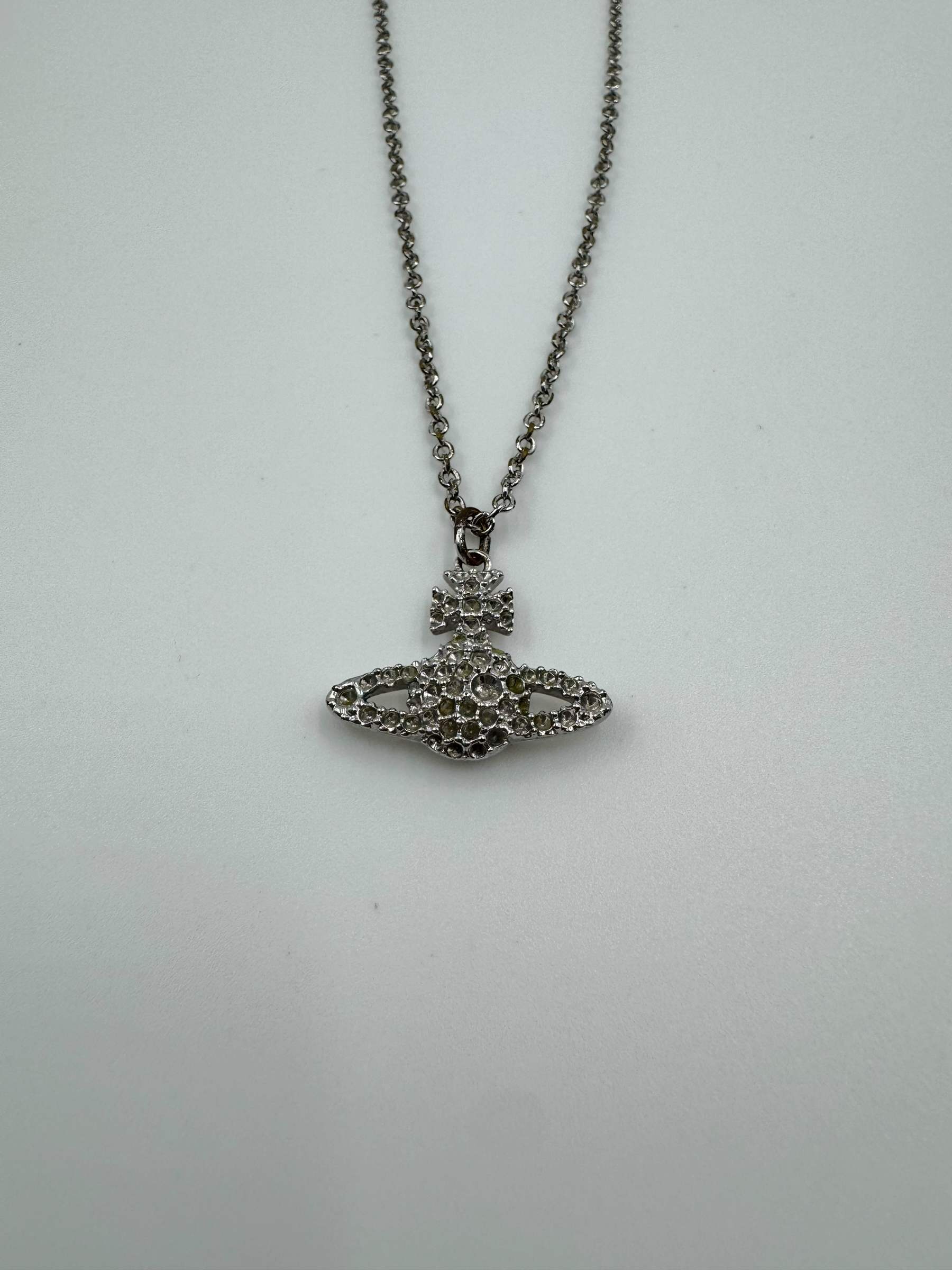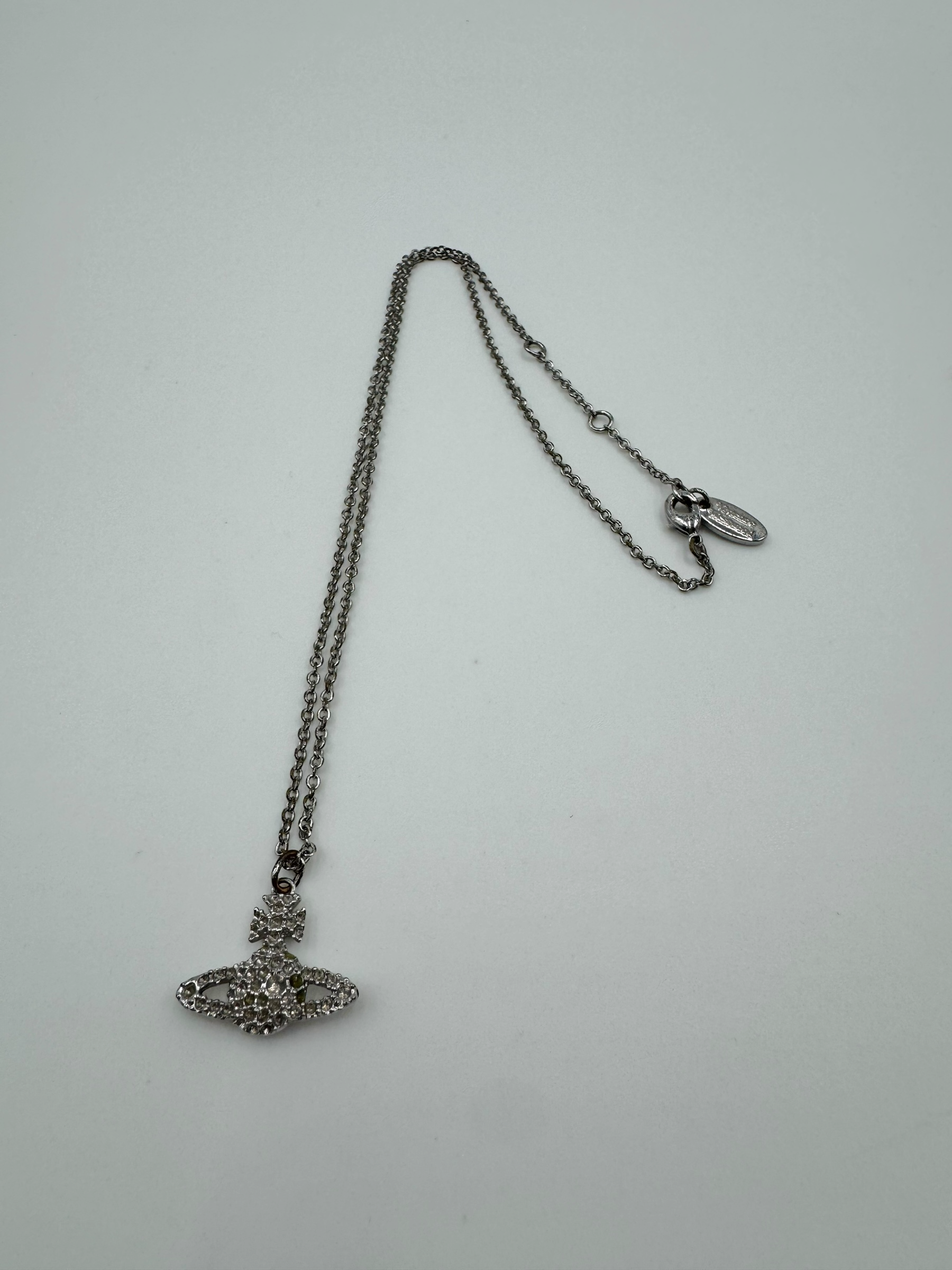 AUTHENTIC VIVIENNE WESTWOOD SILVER SATURN FLAT NECKLACE: